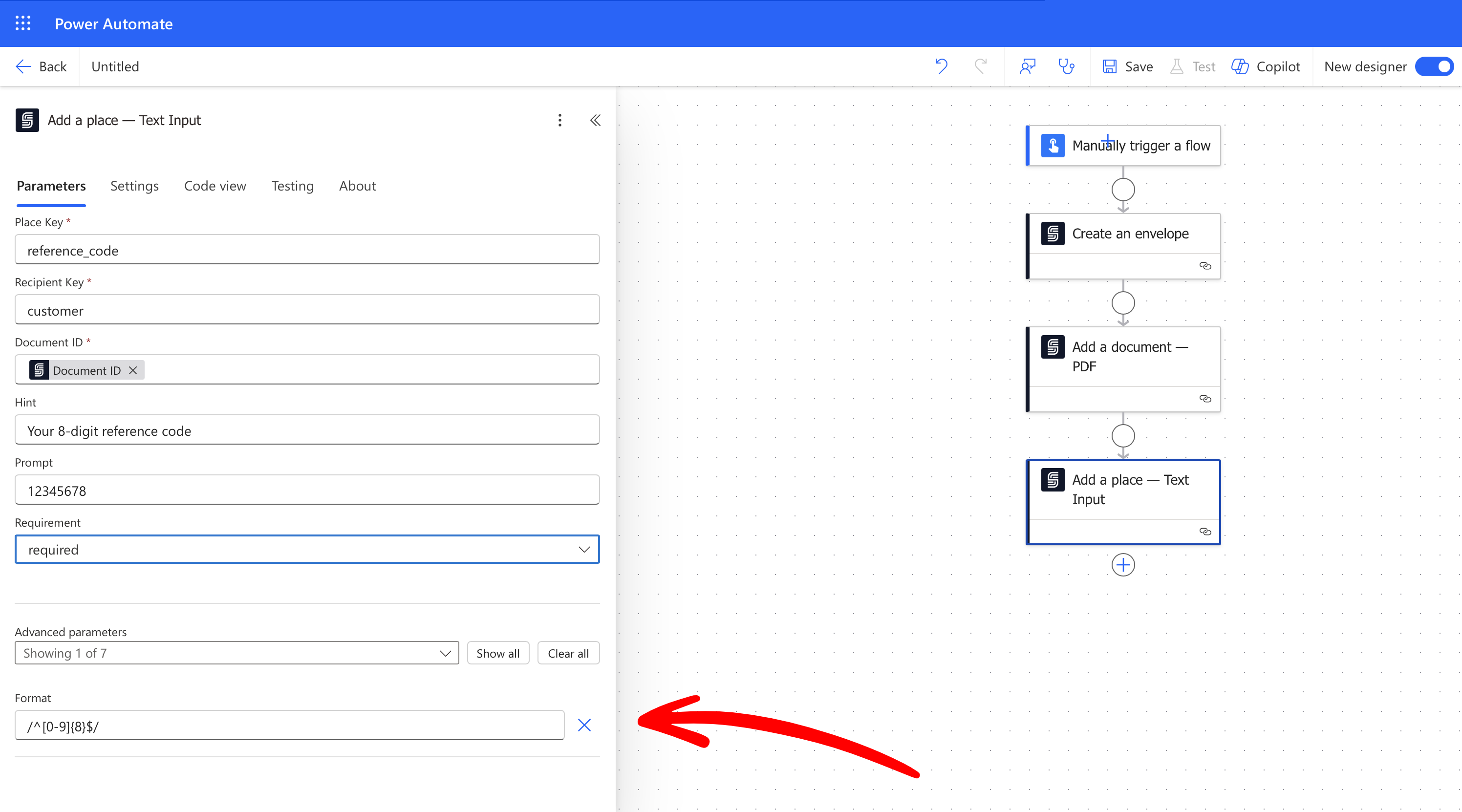 The format property allows you to control the type of input users can enter into a field. This property can accept either predefined formats or custom regular expressions.